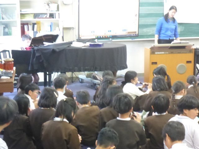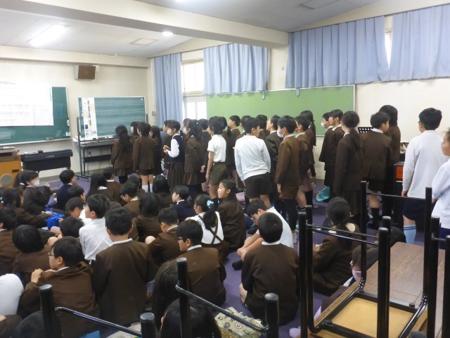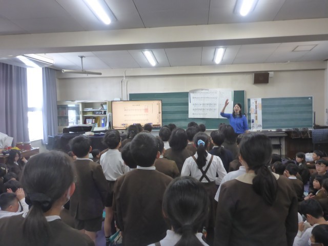 今日は最後の音楽科の時間ということで4年生全員集まって授業を行いました。合唱や合奏を全員で演奏して最後の音楽の授業を楽しみました。元気な歌声や美しい合奏を聞かせてもらいました。