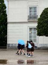 雨はパラパラ降っていますが、傘がなくでも平気な子もいるようです。 来場者が少なく...