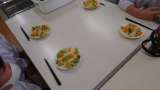 5年生が家庭科の調理実習に取り組んでいました。温野菜のサラダを作っていて、それぞ...