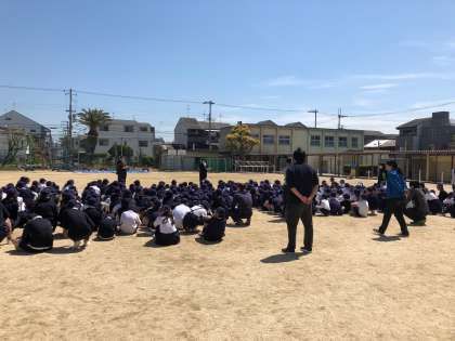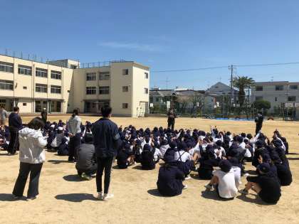 本日3時間目に火災を想定した避難訓練を行いました。避難訓練は火災発生時に児童が迅速・安全に避難できるようになることを目標において行いました。本年度は避難指示が出た後、3分13秒後に運動場に避難することができました。写真は避難後に訓練のふりかえりをしている様子です。