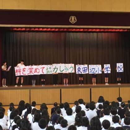 4年生から6年生の各代表委員が自己紹介し、各自の抱負を述べました。そして各クラスから集まった意見から決めた、今年度の目標を発表しました。「絆を深めて 協力し合う 東田辺小学校」です。前期代表委員の皆さん、よろしくお願いします。