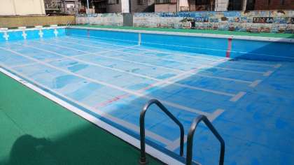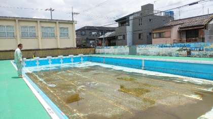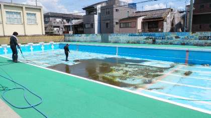 1年間の汚れがたっぷり詰まったプールを、1日かけてピカピカにしていただきました。