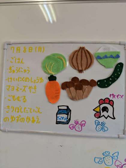 今日の給食は『鶏肉のしょうゆマヨネーズ焼き』『五目汁』『切干しだいこんのゆずの香あえ』でした。