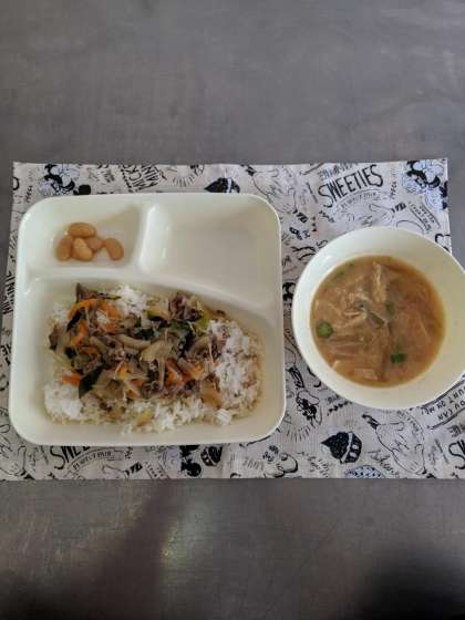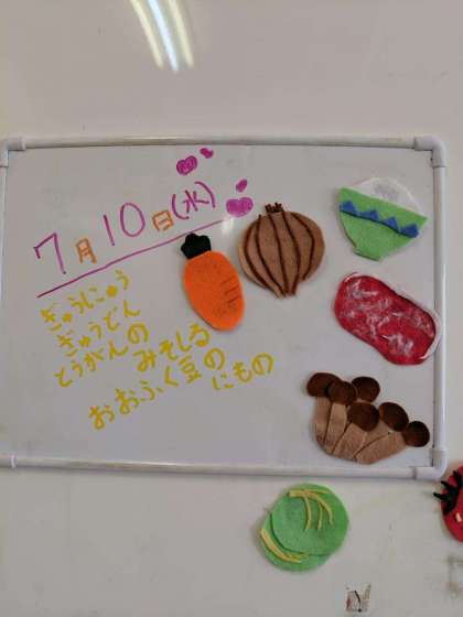 今日の給食は『牛丼』『とうがんのみそ汁』『大福豆の煮もの』でした。
