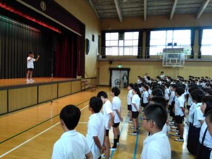 ようやく長い1学期が終わり、終業式を迎えることができました。校長先生から、1学期の東田辺小のみんなのやさしさや頑張りをお話していただきました。生活指導の先生からは夏休み中の過ごし方についてお話があり、とても真剣に話を聞いていました。有意義な夏休みを過ごしてほしいと願っています。