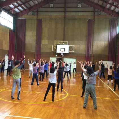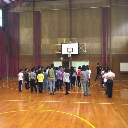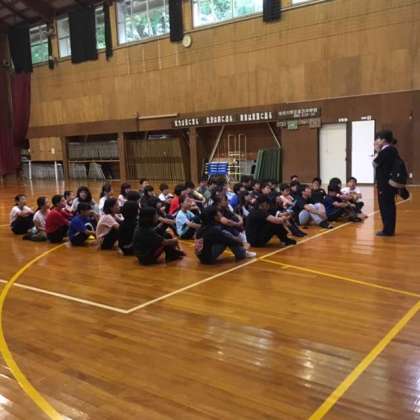 朝のつどいを体育館で行いました。体操をして、今日の予定を確認しました。