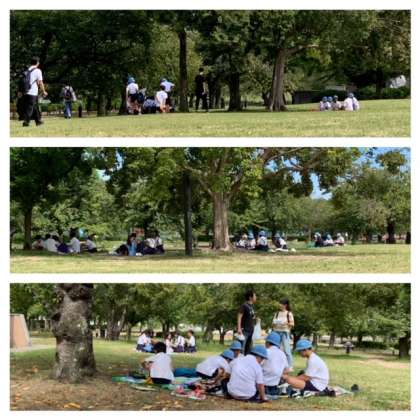 清々しい天候に恵まれ、5年生が秋の遠足で万博記念公園に行きました。