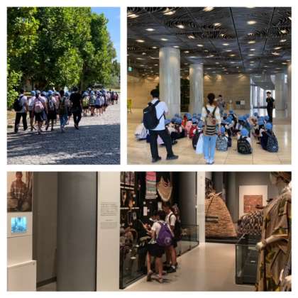 公園に着いて、まず国立民族博物館の見学をしました。世界各地の生活などで使われている物を見て回り、調べました。お弁当を食べた後は、公園の広場でたっぷり遊びました。