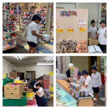 午前中、5年生が駒川商店街にある様々なお店で店員の体験をしました。