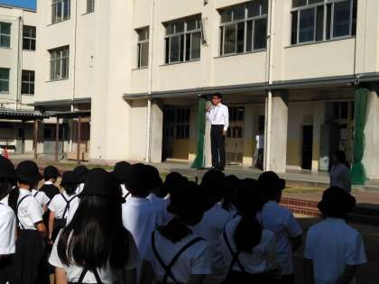 校長先生からは、東田辺っ子集会でみんながよく協力して頑張っていたことをお話してもらいました。また、先週から来られた非常勤講師の先生の紹介のあと、図書委員会から本をたくさん読んでもらう取組みについての話がありました。