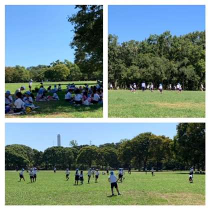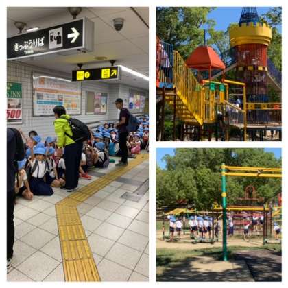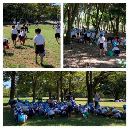 秋晴れの空の下、1年生と2年生が、大泉緑地公園へ遠足に行きました。