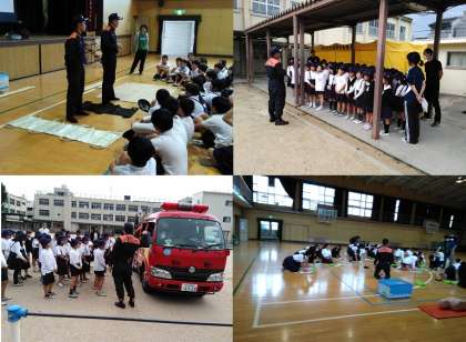 防災について子どもたちに知ってもらう取組を地域の方々、東住吉区役所、東住吉警察署、東住吉消防署の方々のご協力により実施することができました。いざという時に備えてできることを様々なコーナーを設けて学ぶことができました。救命救急法の基礎、新聞で作るスリッパ、学習ビデオの視聴、煙体験や水消火器訓練、簡易担架の搬送といった様々なことについて学ぶことができました。警察の方々のご協力により、災害時での捜索活動についての写真パネルの展示と学習もできました。ご協力いただいた皆様、本当にありがとうございました!!