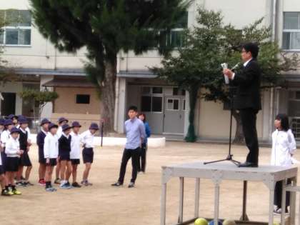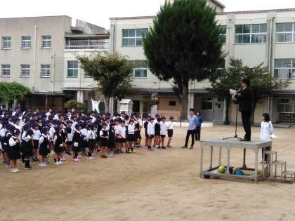 校長先生から昨日のラグビーワールドカップのお話がありました。残念ながら日本のチームは負けましたが、勇敢に戦う選手の姿に感動したという話でした。「ビクトリーロード」の歌の話や、この歌の歌詞の意味などもお話していただきました。子どもたちにはこのラグビーの精神にならって未来に向かって希望や勇気を持ってほしいものだと思います。