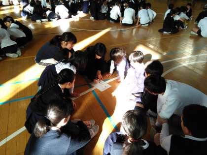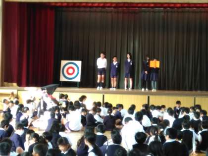 今日の児童集会では「スポーツクイズ」大会をしました。質問「東京オリンピックのマラソン、競歩の開催場所はどこでしょう?」など、運動委員会の児童からタイムリーなクイズの問題がいくつか出されて、各班ごとに答えを書いていきます。全問正解した班が3班もありました。