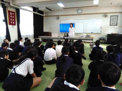 学校薬剤師の先生におこしいただき、薬の正しい使い方についての講座が多目的室にて行われました。実験やプレゼンテーション、DVDなどを使って子どもたちにもわかりやすく説明いただきました。ありがとうございました。また、参加していただきました保護者の方にも感謝申しあげます。