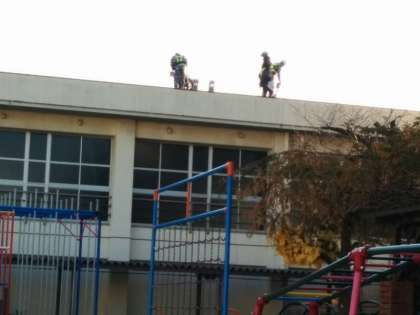 そこで、今回教育委員会に相談して、屋根の全面塗装を行う事になりました。