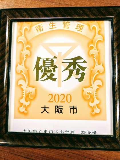 今年度も東田辺小学校の給食室に、環境衛生並びに食品衛生関係施設優秀標をいただきました。