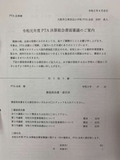 4月21日 PTA決算総会「書面表決書・委任状」について
