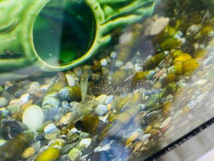 職員室前の水槽ではホタルの幼虫が水槽の中の土から水中へ出てきていました。