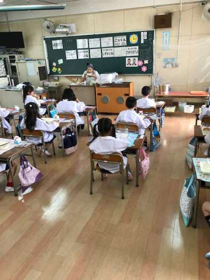 密をさけるために、配膳するときは列ごとにパンや大おかずを取りに来ます。