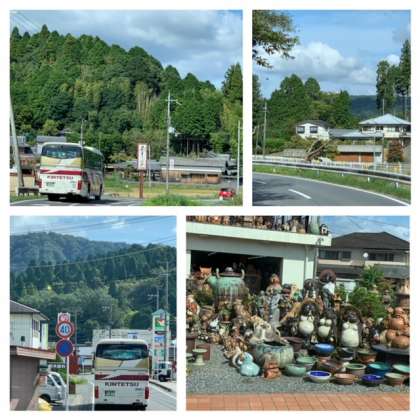 滋賀県甲賀市信楽町の信楽陶芸村に着きました。たぬきの置物が数えきれないほどならんでいます。毎年10万匹も焼いているそうです。