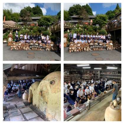 記念写真を撮ってから、陶芸村の方からお話しを聞きました。スカーレットや信楽焼きなどについて詳しく教えていただきました。