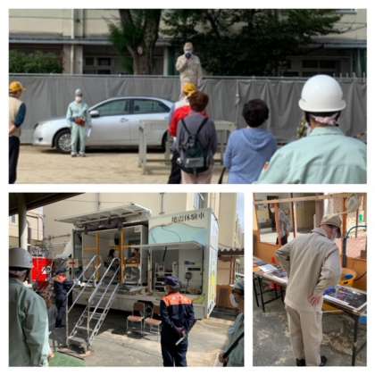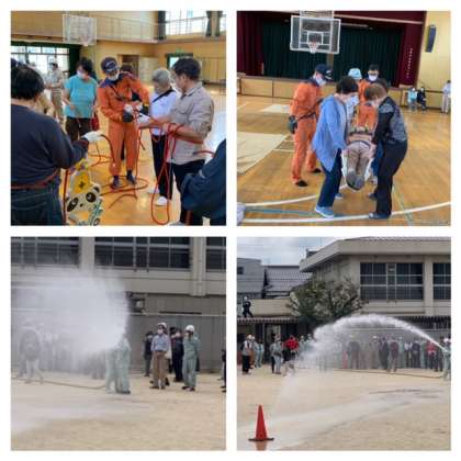 台風も過ぎ去り、良い天気です。今年は起震車も来て、震度7の揺れを体験することができました。また、放水訓練もありました。