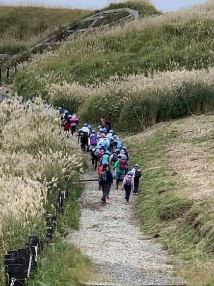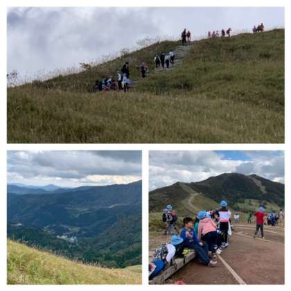 秋の自然を満喫して、みんな頑張って山を登りました。2時頃には、高丸山の頂きに着きました。