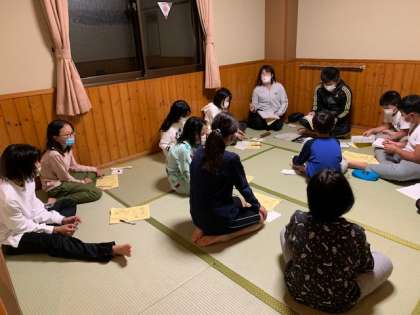 今日の活動での反省点を出し合い、明日の活動に向けてめあてを決めました。
