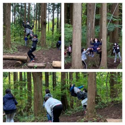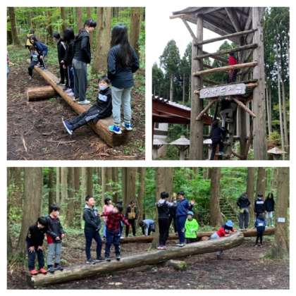 焼板工作の後、宿舎裏のアスレチックで遊びました。