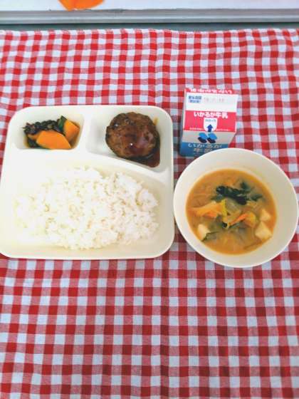 みそ汁は、とうふ、たまねぎ、はくさい、にんじん、わかめを使用した具だくさんのみそ汁です。