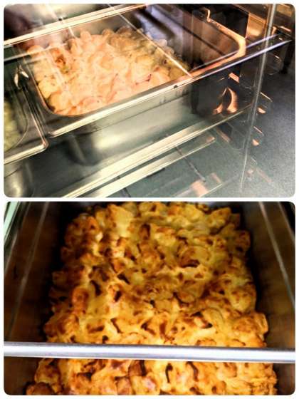 りんごのクラフティは、りんご(カット缶)、小麦粉、砂糖、クリーム、液卵、コーンフレークを使用した、手作りのデザートです。