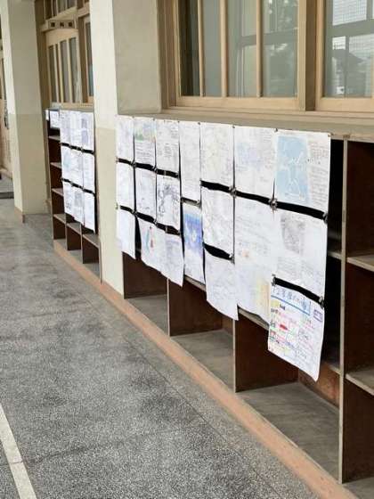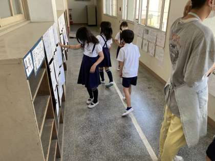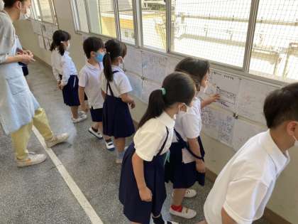 理科室前を通ると子どもたちがかいた掲示物が並んでいました。4年生理科で学習した、星座についてまとめられていました。自分なりに調べたことを細かく書き、絵もいれながらわかりやすくまとめていました。教室が理科室近くにある2年生の子たちも、4年生の作品に興味を持ってみていました!