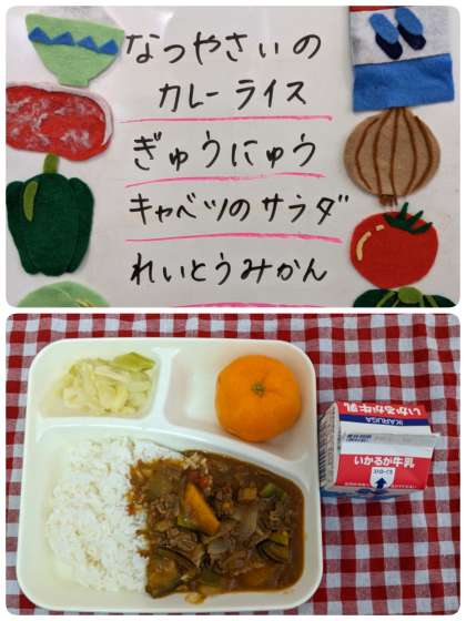 夏野菜のカレーライスは、夏が旬のかぼちゃ、なす、ピーマン、トマト(缶)を使用した夏を感じることができる一品です。