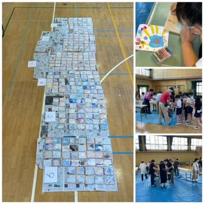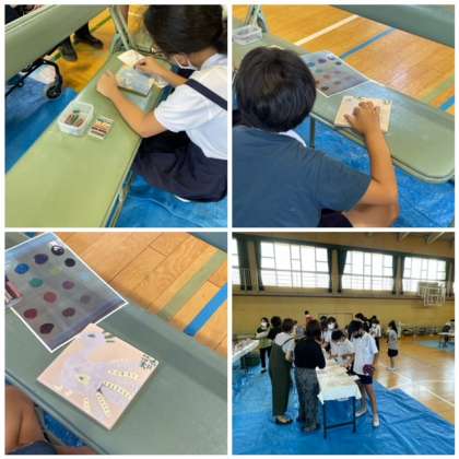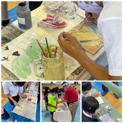 今日は土曜授業で陶板作り体験をしました。子どもたちが考えたイラストをもとに、いろいろな素敵な鳥が出来あがりました。こだわりをもって色や模様を工夫し、真剣に取り組んでいる子がたくさんいました。持って帰りたいという子もいましたが、焼き上がって完成するのが楽しみです。