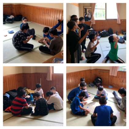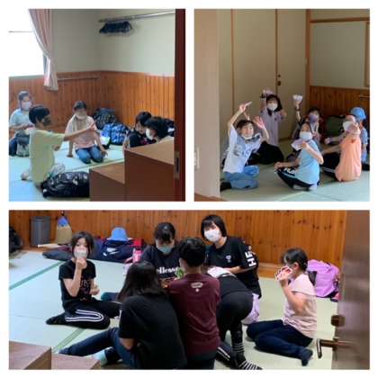 野外炊さんまで時間があったので、高原で遊び部屋でゆっくりしました。