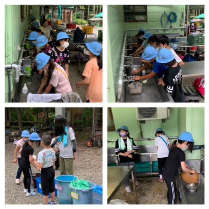 食べた後は、みんなで協力して後片付けをしています。