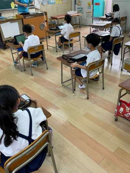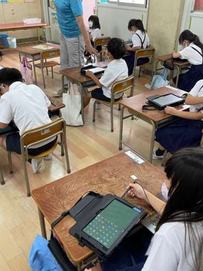 他の学年でも、多くの教室でタブレットを使った学習に取り組む様子が見られました。
