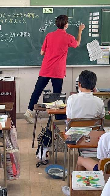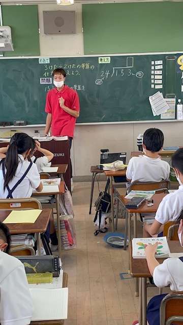 今日から、学年ごとに時間を決めてオンライン学習が始まりました。各学年いろいろな教科で行っていました。写真は、四年生で算数の学習を行っているところです。スムーズに学習を進めることができていました。