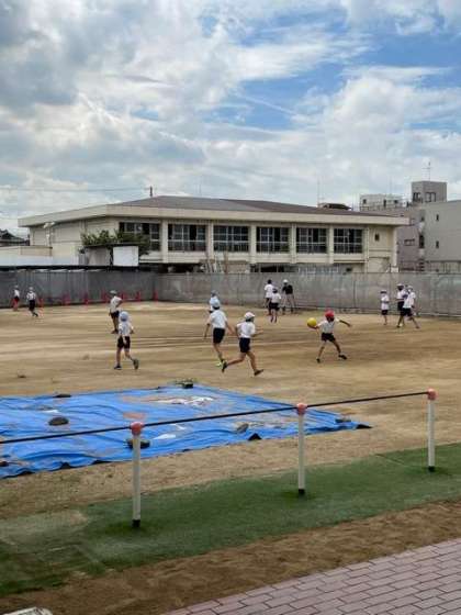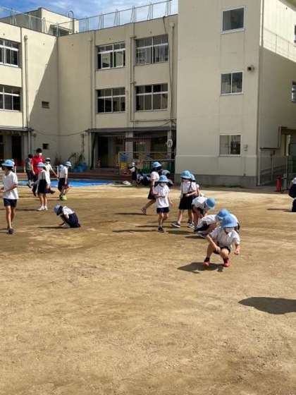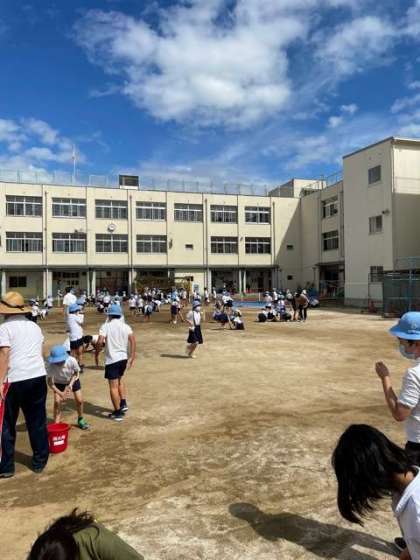 工事により使用できなかった運動場が久しぶりに開放されました。使用する前に、安全のために石拾いをしました。たくさんの子どもたちが石拾いに参加してくれました。久しぶりの運動場の使用に、子どもたちは本当に嬉しそうでした。