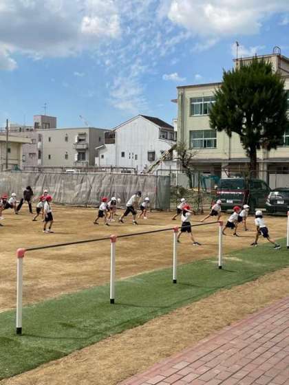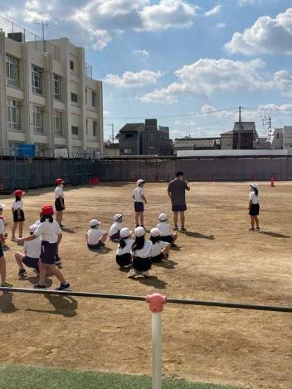 気持ちの良い気候の中、多くの学年が運動場で体育の学習に取り組んでいました。久しぶりの外での体育に、おもいきり体を動かして楽しむ姿がたくさん見られました。