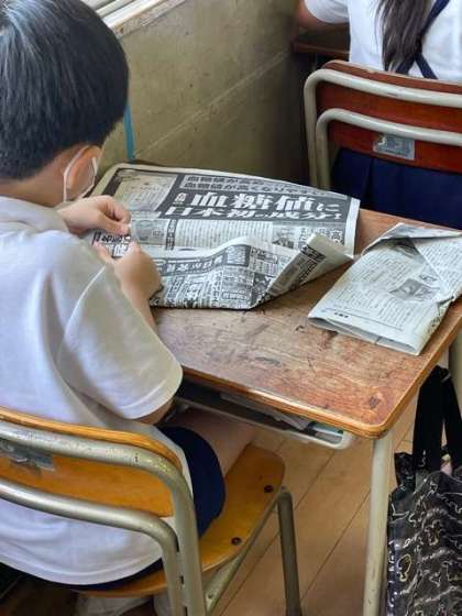 今日は土曜授業がありました。その中で、防災学習にも取り組みました。万が一の災害に備えて、新聞紙を使った簡易の上靴を作ったり、災害について話し合ったり、災害について学ぶDVDを見たりしました。このような学習を通して、少しでも防災に対する意識を高めてもらいたいと思っています。
