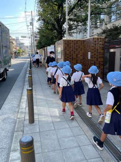 学校を出発する前には、安全面を考え、みんなで交通ルールの確認をしてから出発しました。図書館や消防署、子育てプラザなどいろいろな場所を探検しました。