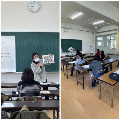 栄養士の先生に話をして頂いたり、子どもたちが実際に行っている配膳を体験していただいたりしました。保護者のみなさんも楽しそうに過ごしてくださっていました。