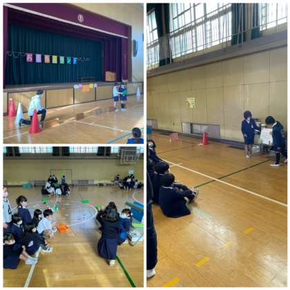 今日は、講堂でおもちゃランドを行いました。2年生が1年生を招待し、生活科や図画工作科の学習を通して作ったいろいろな道具を使って楽しみました。いろいろなコーナーがあって、どれも子どもたちの工夫がたくさんありました。2年生が一生懸命に説明している姿や1年生の楽しむ笑顔がたくさん見られました。