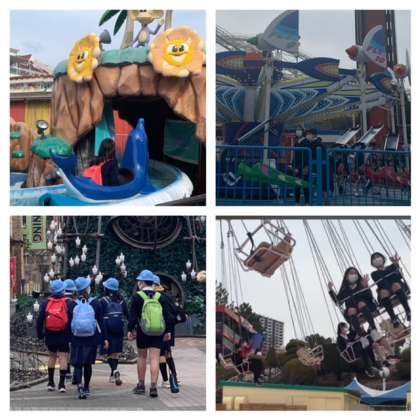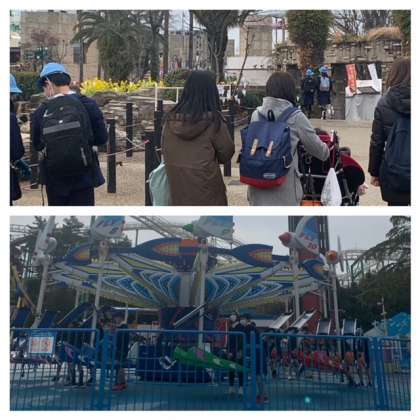 子どもたちは、いろいろなアトラクションに乗り喜んでいました。卒業前の楽しい思い出となったことでしょう。