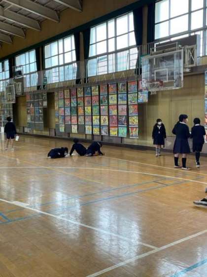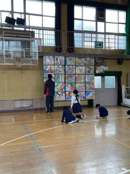 今日は作品展を行いました。学年ごとに講堂へ行き、いろいろな学年の作品を鑑賞しました。子どもたちは、作品を見ながら鑑賞カードにたくさんの感想をかいていました。「あの絵がすごかった」「めっちゃ、色の使い方がきれい」などのたくさんの感想が聞かれました。
