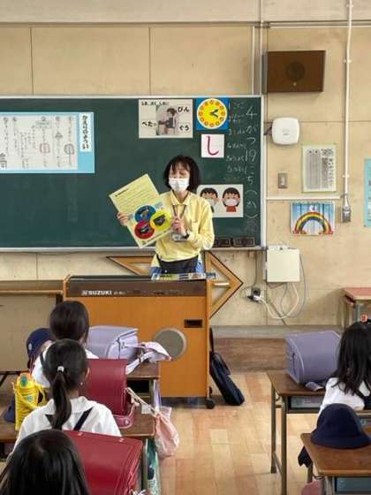今日は1年生の教室に、区役所からラビット隊の皆さんが来られました。ラビット隊の皆さんからは、登下校中の気をつけることや交通ルールについてお話がありました。子どもたちもしっかりとお話を聞いていました。