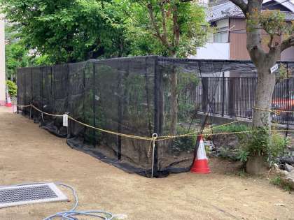 先週土曜日、東田辺フォーラムの皆さんらによって、本校の学校ビオトープに黒いネットが設置されました。6月12日「ほたるの夕べ」でホタルを鑑賞できるように準備してくださいました。今から楽しみです。