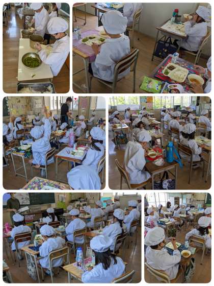 牛肉と細切りにしたピーマン、たけのこを使い、砂糖、こいくちしょうゆ、オイスターソースで味つけしています。毎回好評な献立です。